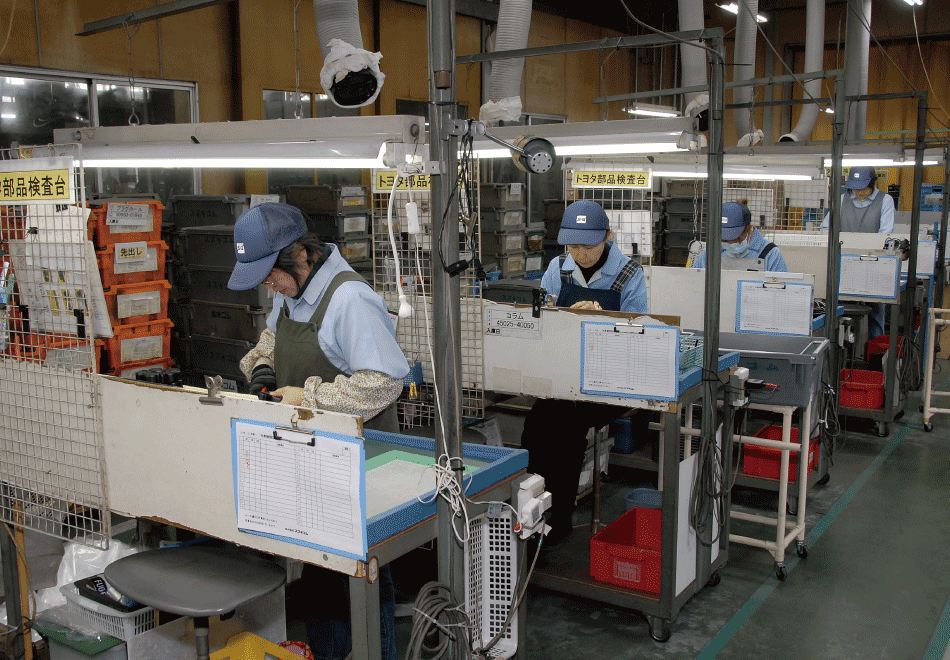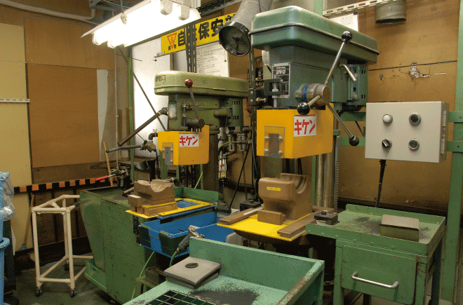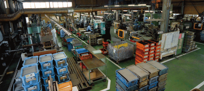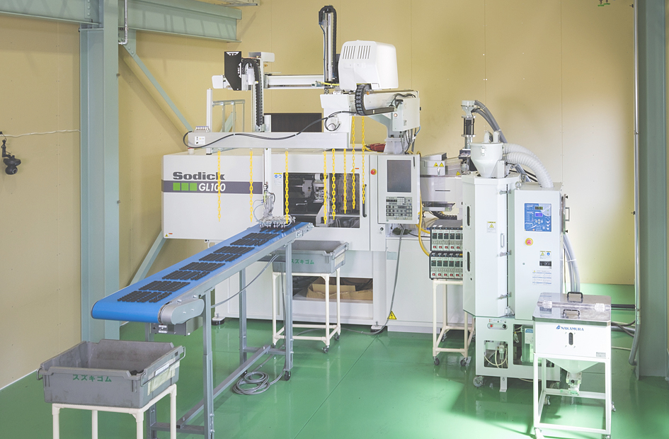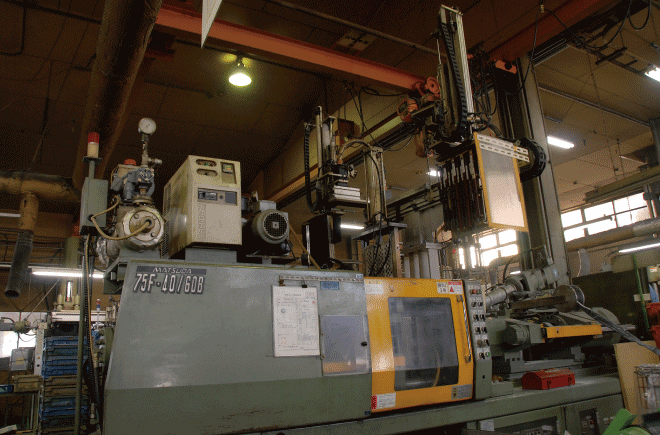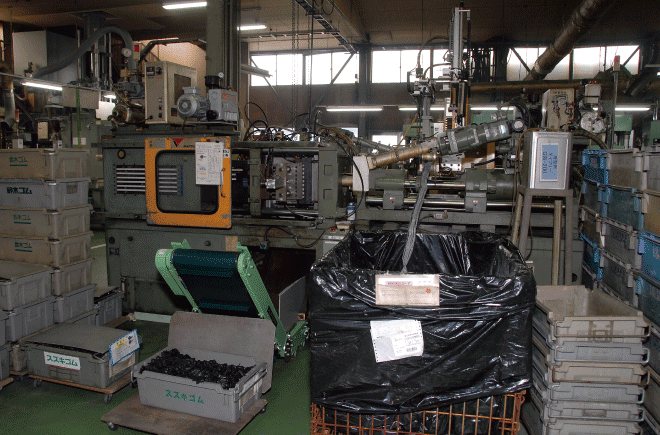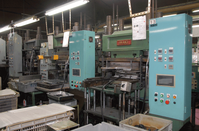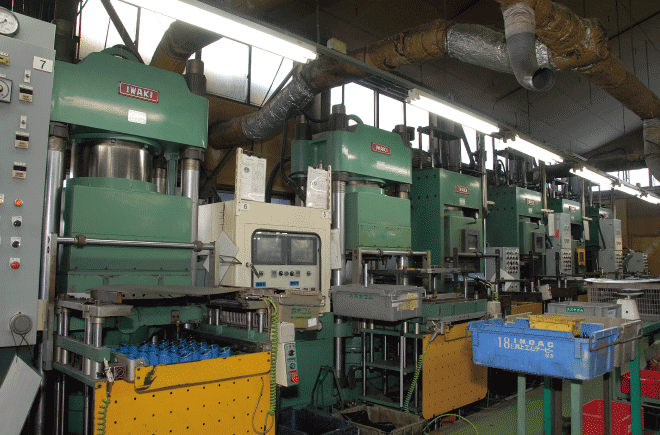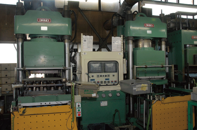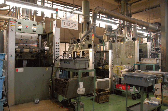 | タテ型射出成型機 ────────── | 300トン 3台 | プレス成型機 ──────────── | 150トン 14台 | ||||||